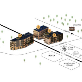– Mugavus: Maa-alune parkimine, privaatne rattaparkla ja jahutusvalmidus enamikes korterites;
