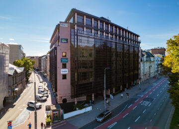 Esinduslik endine pangahoone Vabaduse Väljaku ääres, mille üürnikeks mitmed nimekad ettevõtted.
