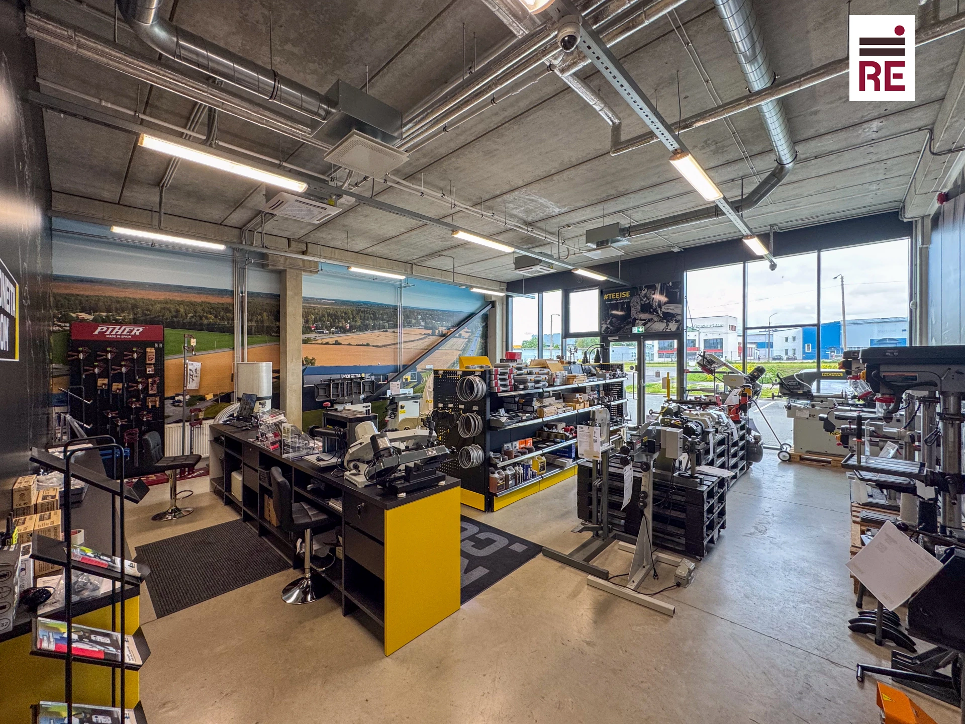 Üüripind asetseb kahel korrusel. Esimesel korrusel asub privaatse sissepääsu ja vitriinakendega müügi- või teenindussaal suurusega 124,2 m². Hoone tagumisest osast on samale pinnale ligipääs läbi tõstukse, mis tagab mugava ligipääsu kaubaga. Esimesel korrusel asub lisaks tualettruum ja dušš. Teisel korrusel asub sisetrepiga ühendatud büroo suurusega 50 m².