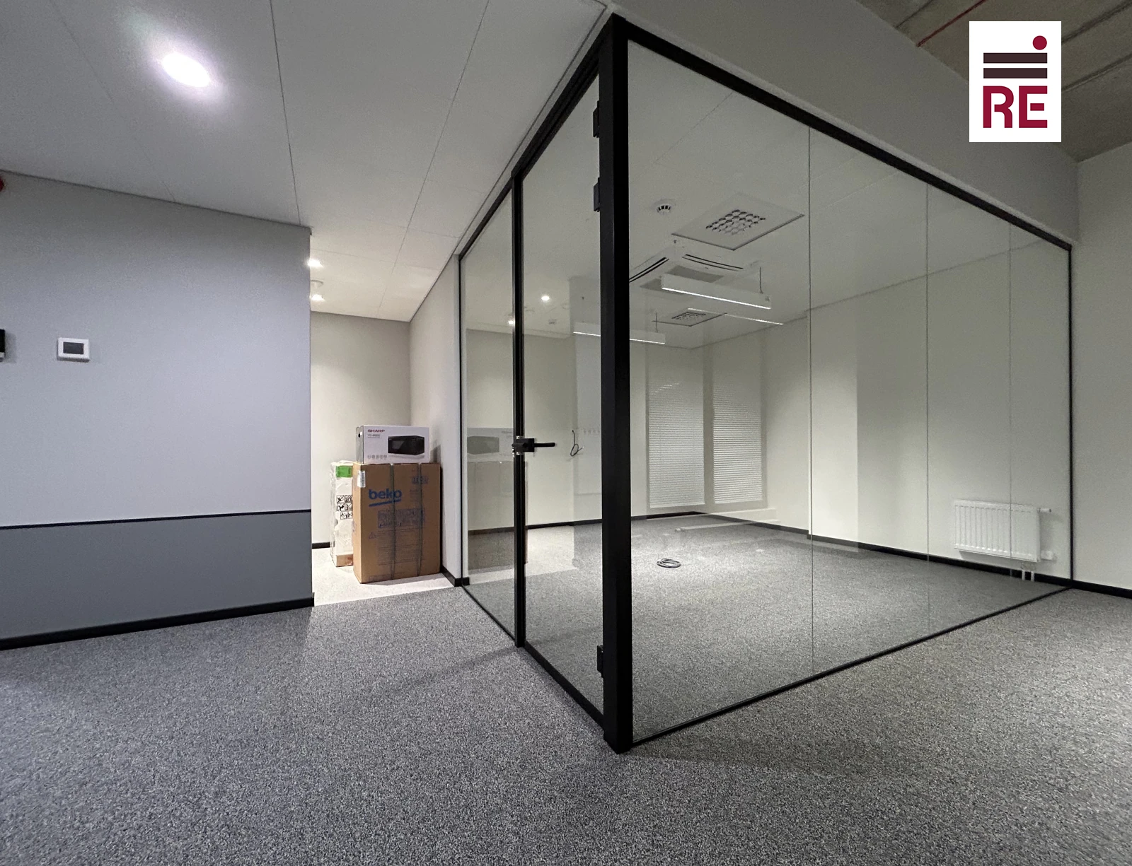Büroopindadel on olemas sundventilatsioon ja jahutus. Samuti on pinnal privaatne tualettruum ning kööginurk koos vajaliku sisustusega. Põrandal on vaipkate.