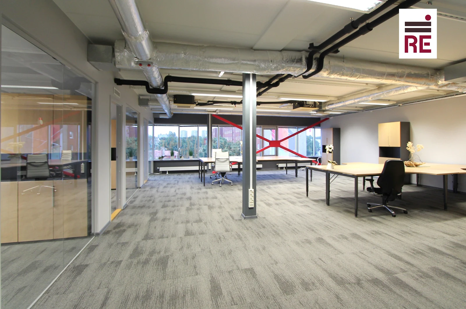 236,5 m² suurune pind hõlmab suurt avatud bürooala, 5 kabinetti, lisaks puhketuba-köök ja nõupidamisteruum.