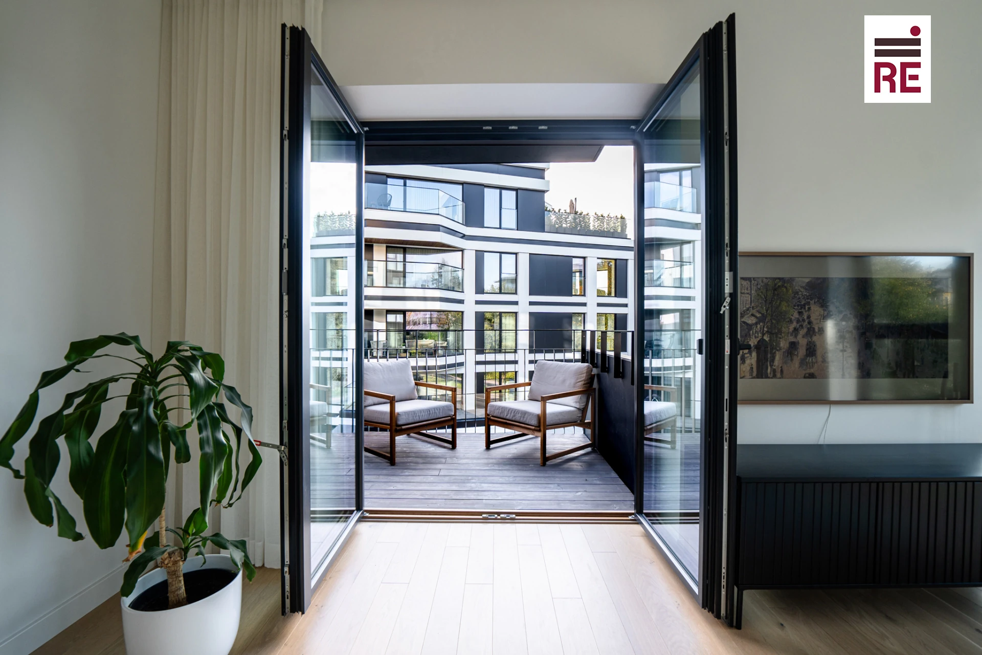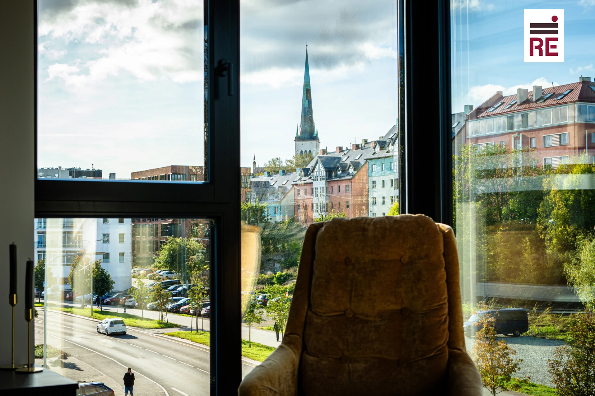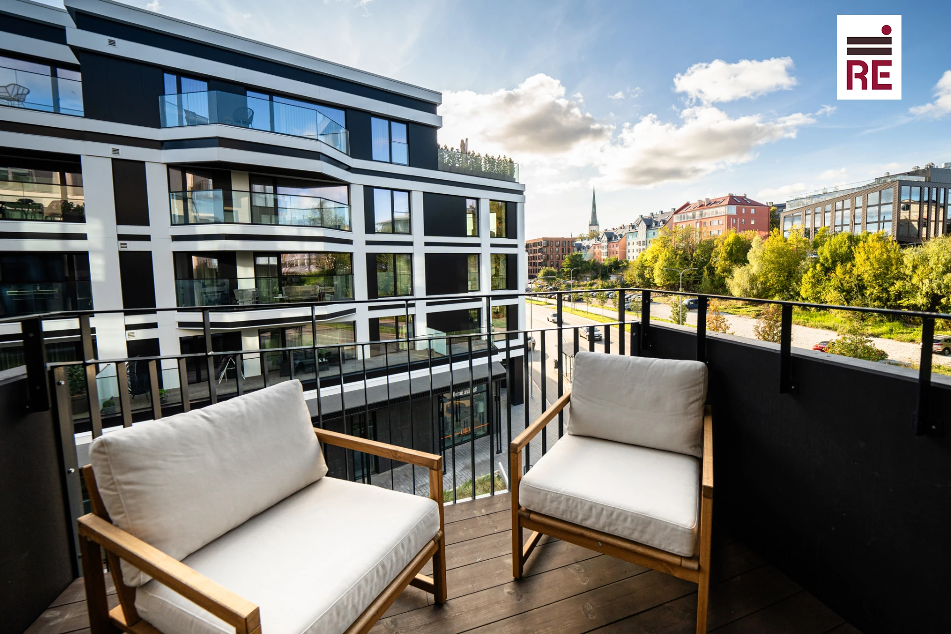 Этот угловой южный апартамент наполняется теплыми солнечными лучами днем, а вечером дарит живописный вид на закат с фоном Старого города. Сердце этого дома — просторная и светлая гостиная, оформленная в мягких, нейтральных тонах. Кухонный остров с вместительными ящиками и шкафчиками объединяет кухню и гостиную в одно гармоничное пространство. Кухня, созданная известным производителем Arens, отличается стильным и практичным дизайном с встроенной техникой. Характер помещению придают тройные окна с рамами из темного дерева и алюминия, а также белоснежные шторы до пола на карнизах. Из гостиной выходят две большие двери на балкон, который становится отличным местом для наслаждения красивыми видами и атмосферой квартала. Летом балкон превращается в идеальное продолжение жилого пространства, позволяя наслаждаться теплыми летними вечерами на свежем воздухе.