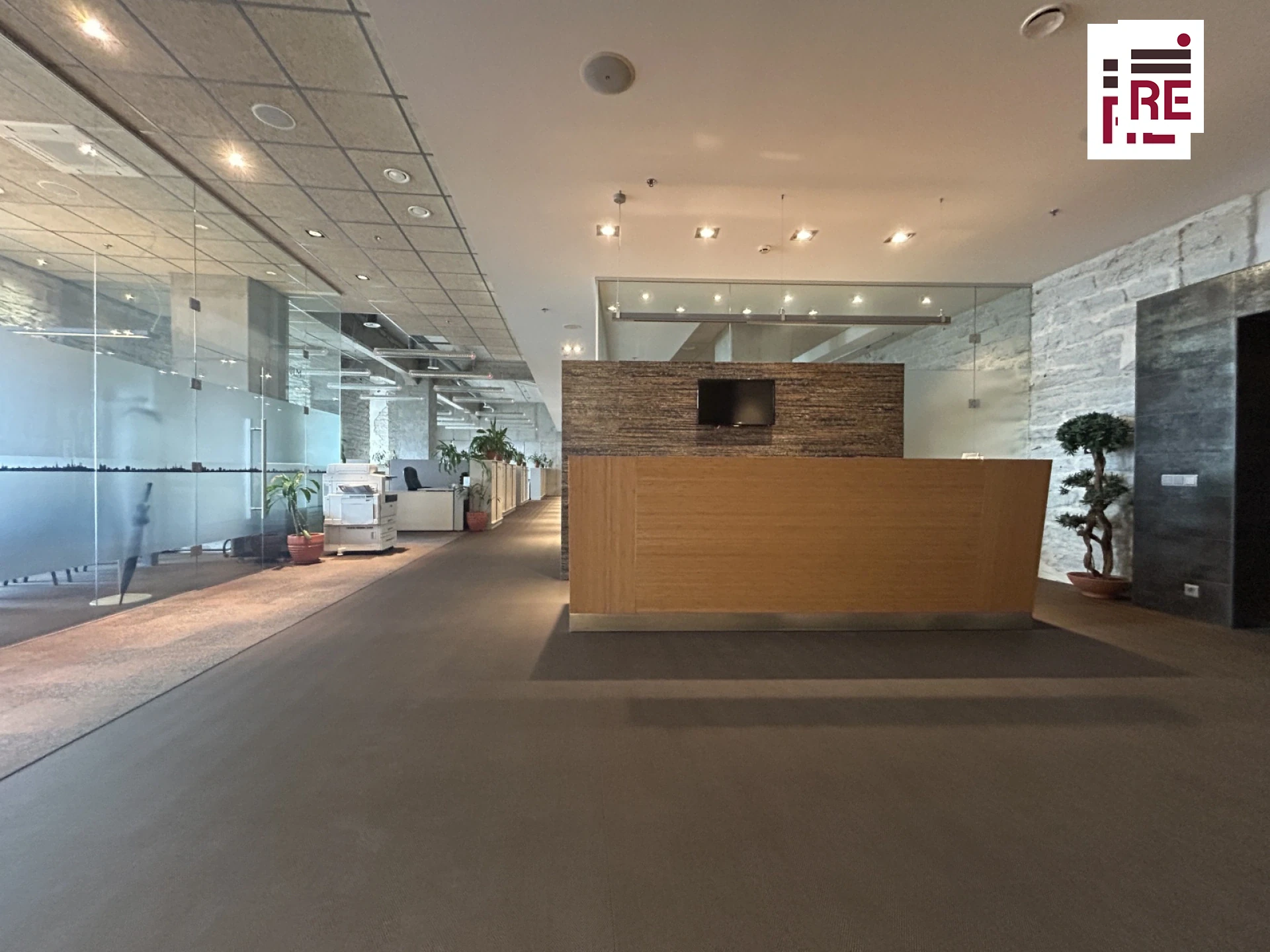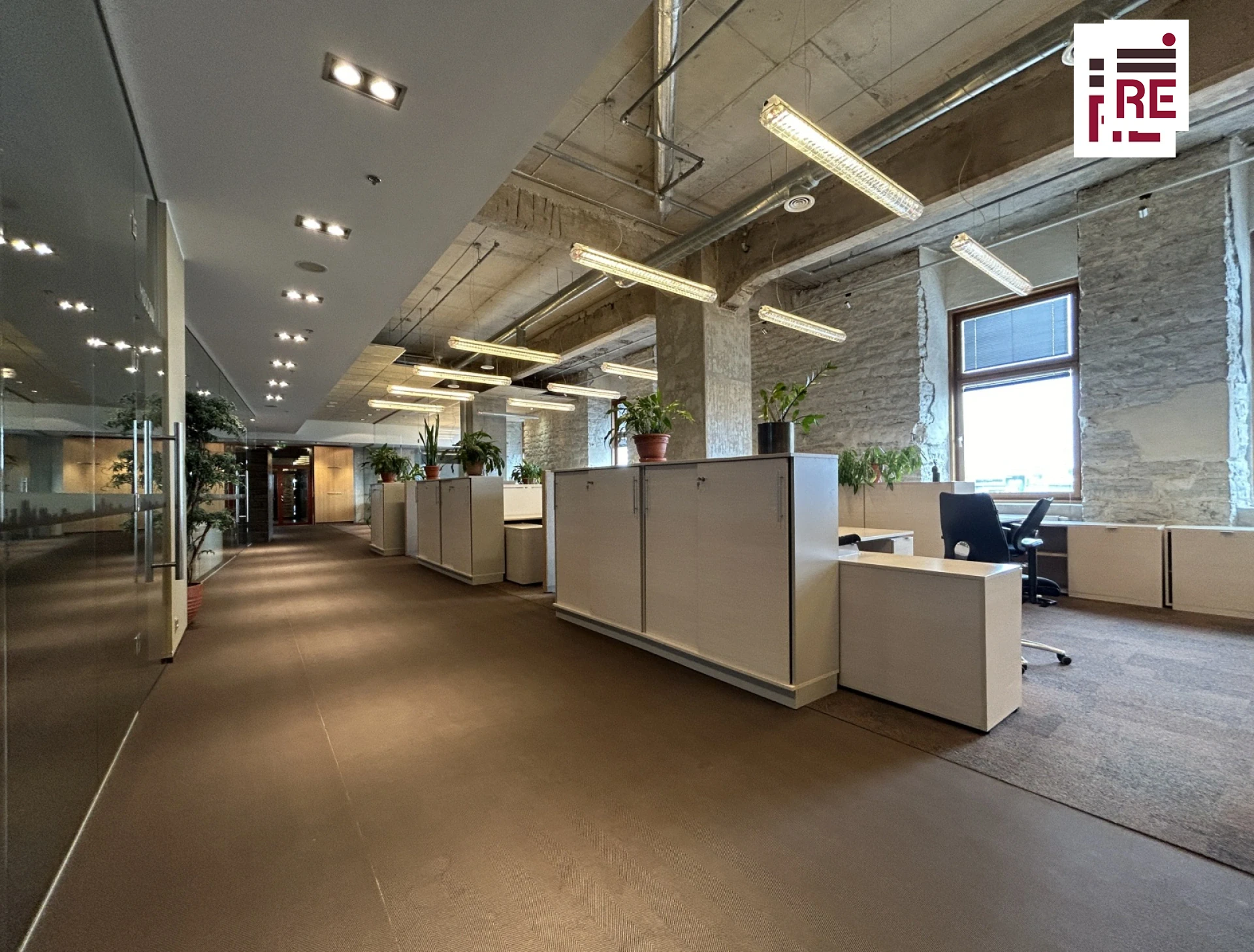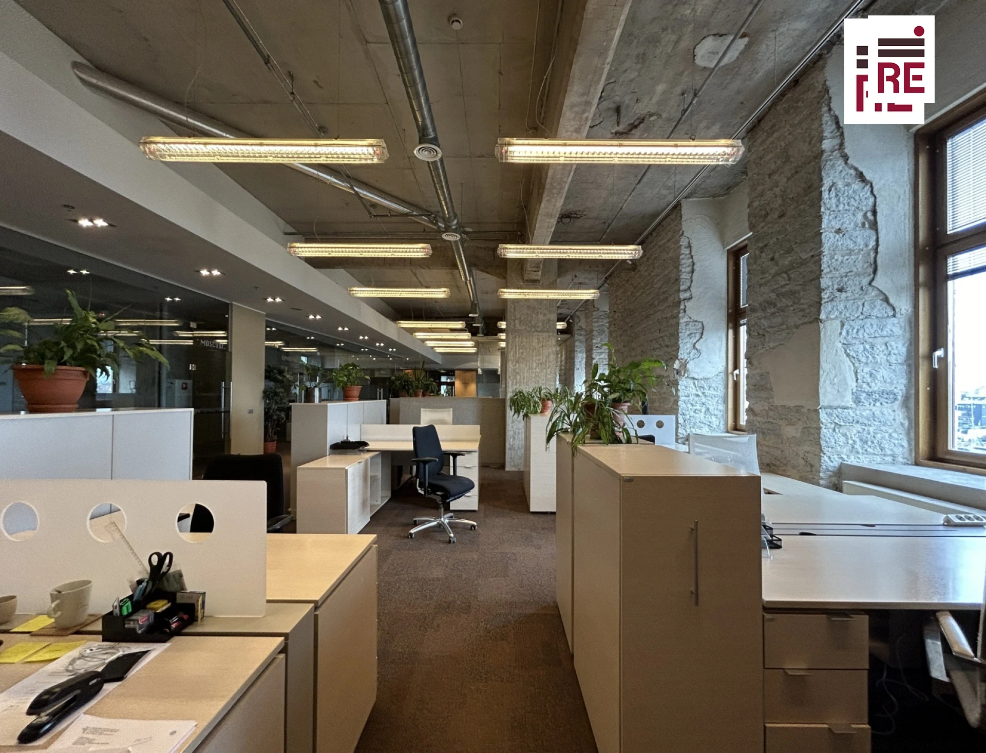 402,5 m² suurune kõrgete lagedega büroo on valdavalt avatud planeeringuga. Olemas on ka eraldatud tööalad, mitu nõupidamisteruumi, vastuvõtuala, kööginurk, puhkeruum, kaks tualettruumi ja panipaik.