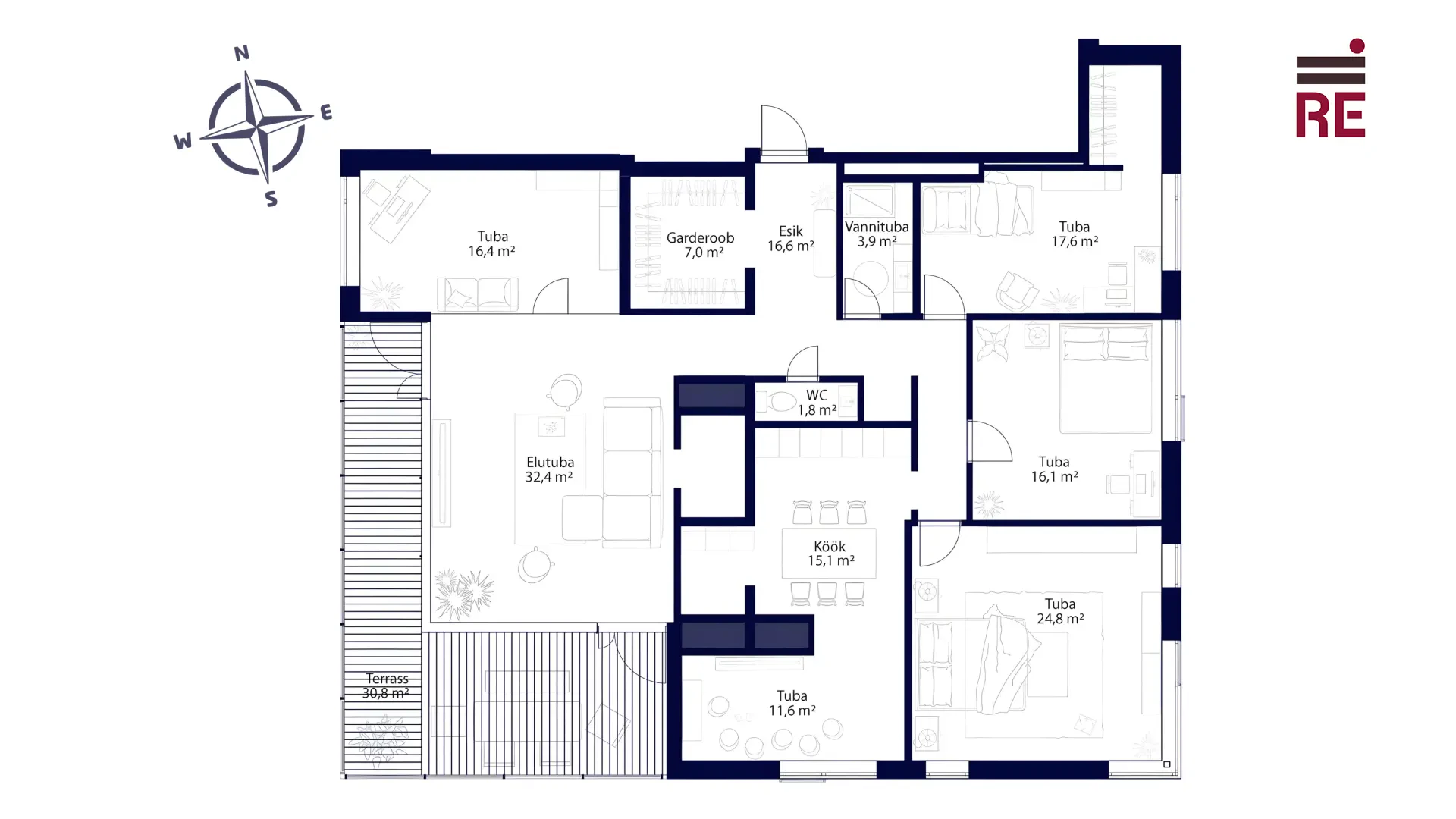See kodu on tõeliselt valgusküllane - läbi maja planeeringuga 5-toaline korter suurusega 163,3 m² ja lisaks NB! 30,8 m2 terrass! Sul on võimalus kujundada see kodu oma maitse- ja vajaduste järgi. Ruumi on nii palju, et saad siia rajada ka oma koduse spaa - selliste vaadetega spaad juba naljalt ei leia!
