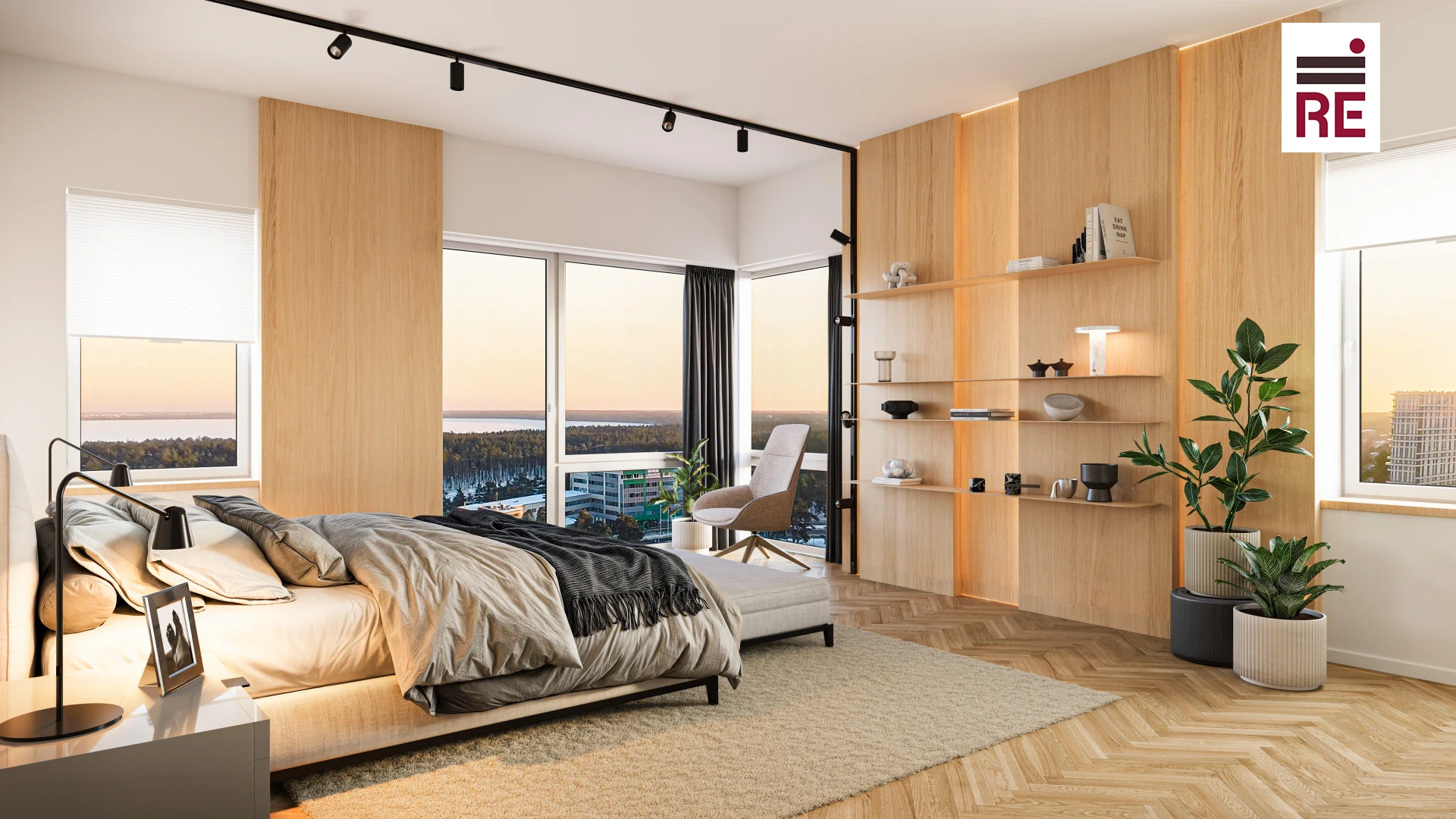 15-ndal korrusel asuvast kodust avanevad vaated linnasiluetile ja ümbruskonnale - ühel pool Ülemiste järv ja mets, teisel pool vaade linnale ja merele.
